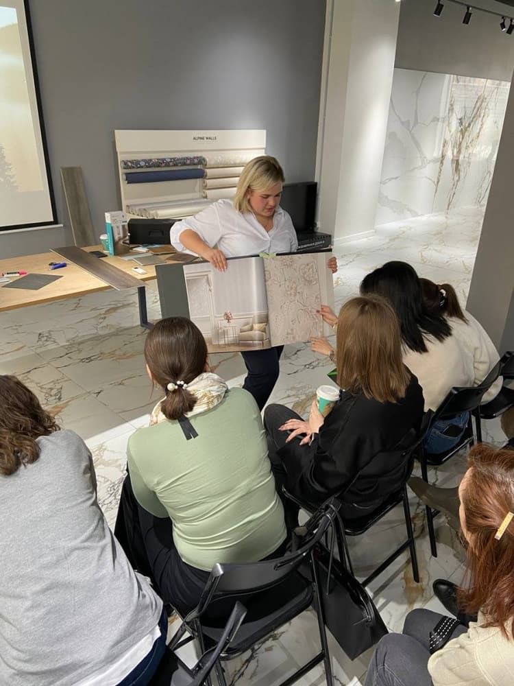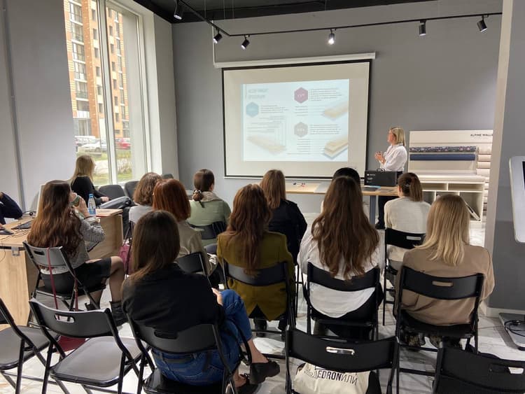 Особый интерес слушателей вызвали коллекции флизелиновых дизайнерских обоев Alpine Walls и стеновые декоративные панели LineArt. Помимо функциональных свойств разграничения пространства и придания цветовых акцентов они способствуют гармонизации общей композиции помещения и добавляют интерьеру глубины.